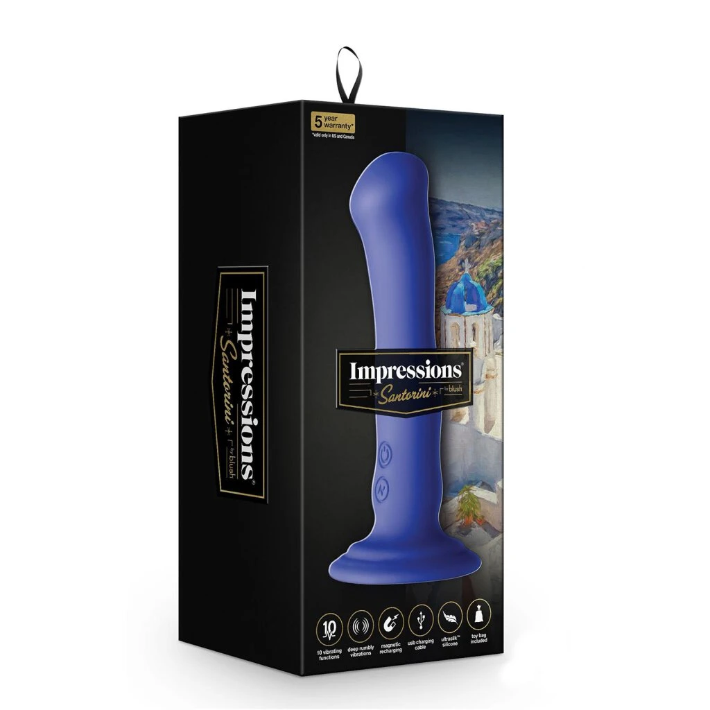 Der Impressions Santorini ist schön, mutig und bereit zu liefern! Santorini hat schöne Kurven für ein optimales G-Punkt- oder Prostataspiel und ein massierendes, angenehmes Gefühl. Mit tiefen, rumpeligen Vibrationen, die durch den RumbleTech™-Motor in 5 Stufen und 5 Variationen von Pulsation und Eskalation wechseln, ist Santorini bereit, die ganze Nacht lang zu tanzen. Die ausgestellte Basis macht ihn harness-kompatibel und sicher für Analspiele. Dank des leistungsstarken Saugnapfes können Sie freihändig spielen; kleben Sie ihn einfach auf jede glatte, ebene Oberfläche. Santorini verfügt über eine magnetische Magna Charge USB-Ladestation, die sicherstellt, dass er während der gesamten Lebensdauer des Produkts wasserdicht bleibt und für eine einfache Reinigung nach IPX7 wasserdicht ist. Ultrasilk™-glatt und aus Puria™-Silikon hergestellt, ist er körperverträglich und frei von Phthalaten. Mit Impressions sind die Möglichkeiten endlos, also packen Sie ein und machen Sie sich bereit für eine Reise nach Santorini! Länge: 16,5 cm / Einführbare Länge: 11,4 cm / Breite: 3,8 cm