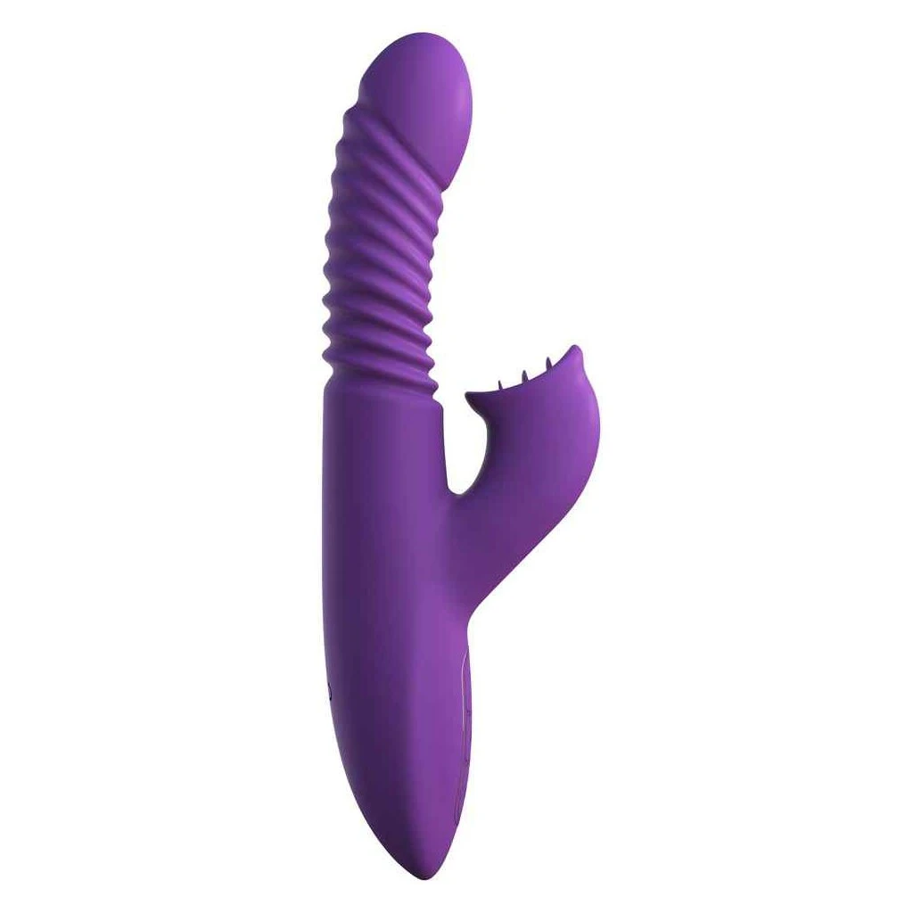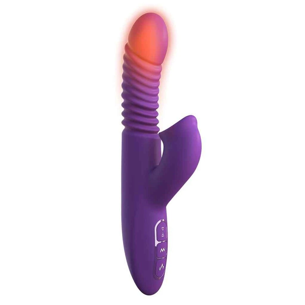 Dieser Rabbitvibrator stimuliert mit seiner kräftigen Rotations- und Stoßfunktion in 2 verschiedenen Modi. Der Klitorisstimulator ist mit Zungen ausgestattet, die die Liebesperle mit der intensiven Vibration stimulieren. Auch der Schaft kann sich von außen sehen lassen, mit seiner Reizstruktur und der ausgeprägten Eichel. Der Schaft ist noch mit einer Wärmefunktion ausgestattet, die den Vibrator auf Körpertemperatur erhitzt. Da er wasserdicht ist, freut er sich auch über einen Besuch in Bad oder Dusche. Inklusive USB-Ladekabel.