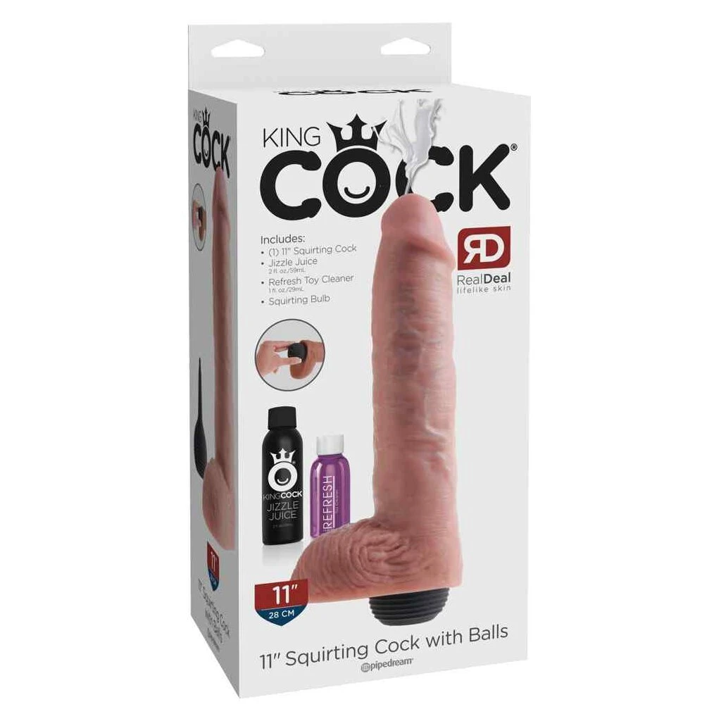 Dieser hyperrealistische Naturdildo kann sogar realistisch spritzen, ganz wie das Original. Der Pumpball wird einfach befüllt und am Schaftende eingeführt. Auf Druck katapultiert er dann die auserwählte Flüssigkeit aus der Eichel. Inklusive 59 ml Jizzle Juice (künstliches Sperma) und 29 ml Toycleaner.