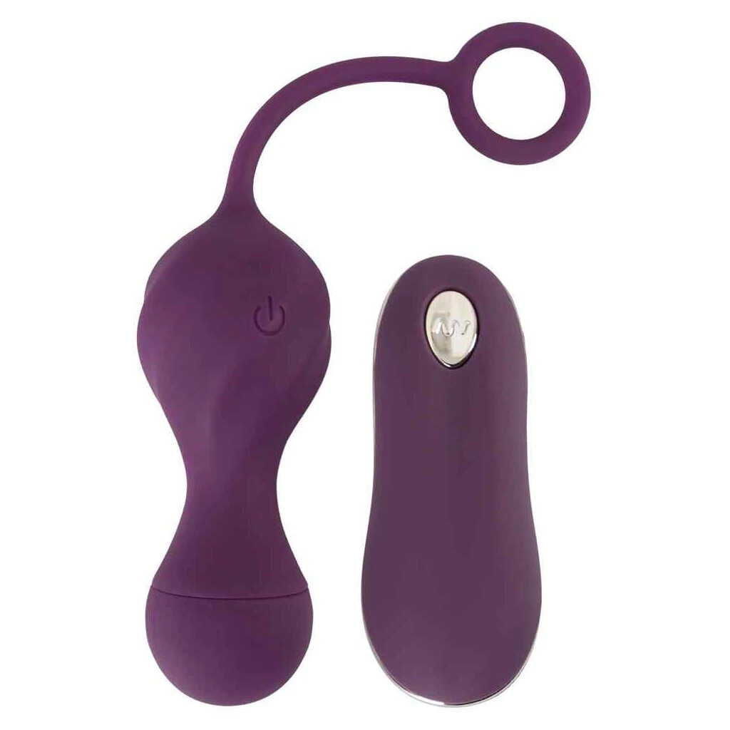 Wiederaufladbares Vibrokugel-Duo mit Stimulationsstruktur und elastischem Rückholband. Der kraftvolle, dennoch leise Motor sorgt mit 10 verschiedenen Vibrationsmodi für aufregende Abwechslung beim Trainieren und Verwöhnen – alles bequem mit der kabellosen Fernbedienung per Knopfdruck steuerbar – mit einer Reichweite von 5 Metern auch vom Partner! Mit einem Gewicht von 73 g sind die Vibrokugeln auch perfekt für ein effektives Beckenbodentraining geeignet. Die Love Balls sind rundum aus weichem Silikonmaterial gefertigt und sorgen beim Verwöhnen/Training für ein sehr angenehmes Hautgefühl. Inklusive USB-Ladekabel und Batterie (23A) für die Fernbedienung.